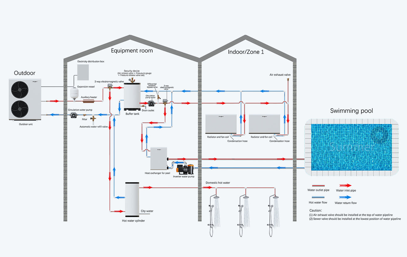Multi-functions intergerated in one outdoor unit, INVERBOOST air/water heat pump is significantly cost savings.The installation is also easy.